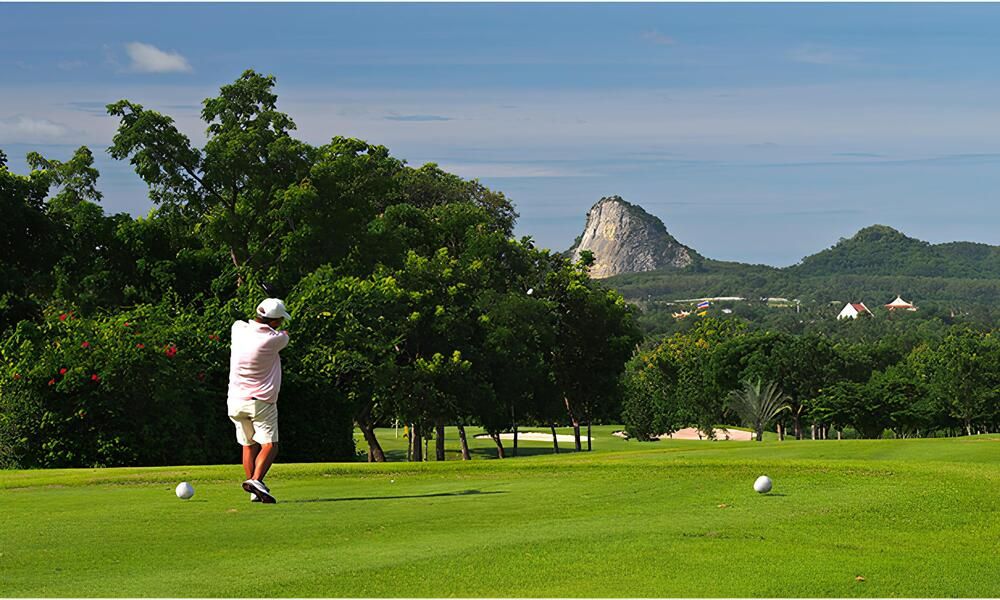 The Mountain Course affords the golfer an exquisite view of a famous landmark, with the best vantage point being the fairway of the signature 6th hole.  A nearby mountain, with a large sheer-cliff face that is easily seen, has an impressive laser-carved image of Buddha. The 3-dimensional quality of The Mountain Course’s fairways tests the golfers’ interest and judgment of each stroke. The greens are designed to provide opportunities to show the golfers’ putting skills.